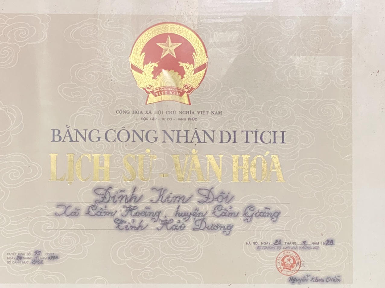 DI TÍCH XẾP HẠNG CẤP QUỐC GIA ĐÌNH KIM ĐÔI, XÃ CẨM GIANG