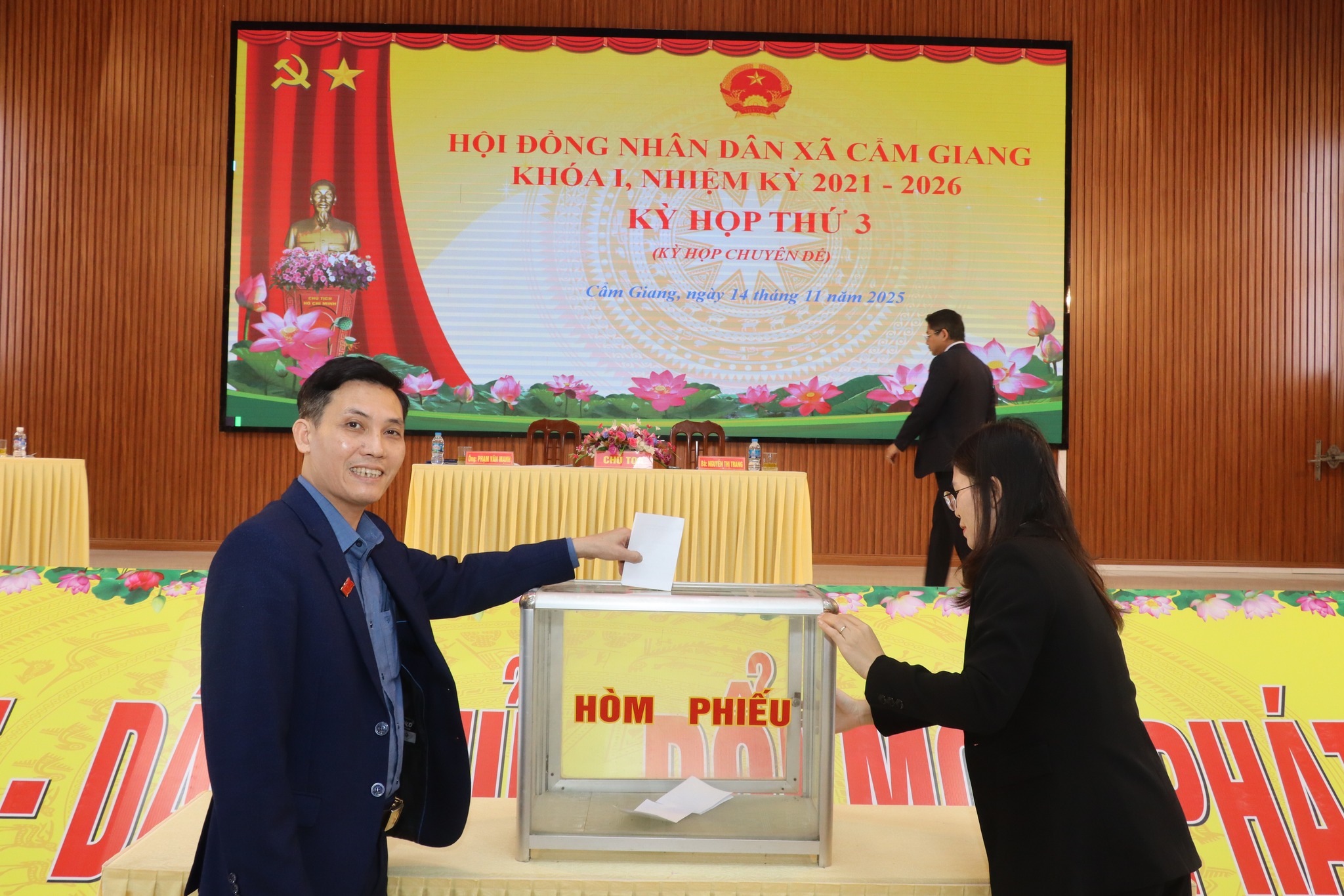 Cùng với đó là thông qua các nghị quyết: Nghị quyết về ban hành Quy chế làm việc của Hội đồng nhân dân xã Cẩm Giang khóa I, nhiệm kỳ 2021 - 2026; Nghị quyết về việc đề nghị điều chỉnh, phân bổ vốn đầu tư công ngân sách địa phương 5 năm giai đoạn 2021-2025 và kế hoạch năm 2025 xã Cẩm Giang; Nghị quyết về Kế hoạch đầu tư công trung hạn giai đoạn 2026-2030; Nghị quyết về việc đề nghị điều chỉnh, bổ sung dự toán chi ngân sách xã năm 2025; Nghị quyết về việc phân bổ kinh phí từ nguồn bổ sung có mục tiêu ngân sách thành phố 2025; Nghị quyết điều chỉnh chỉ tiêu biên chế; Nghị quyết về việc bầu bổ sung Ủy viên Ủy ban nhân dân xã khóa I, nhiệm kỳ 2021-2026.