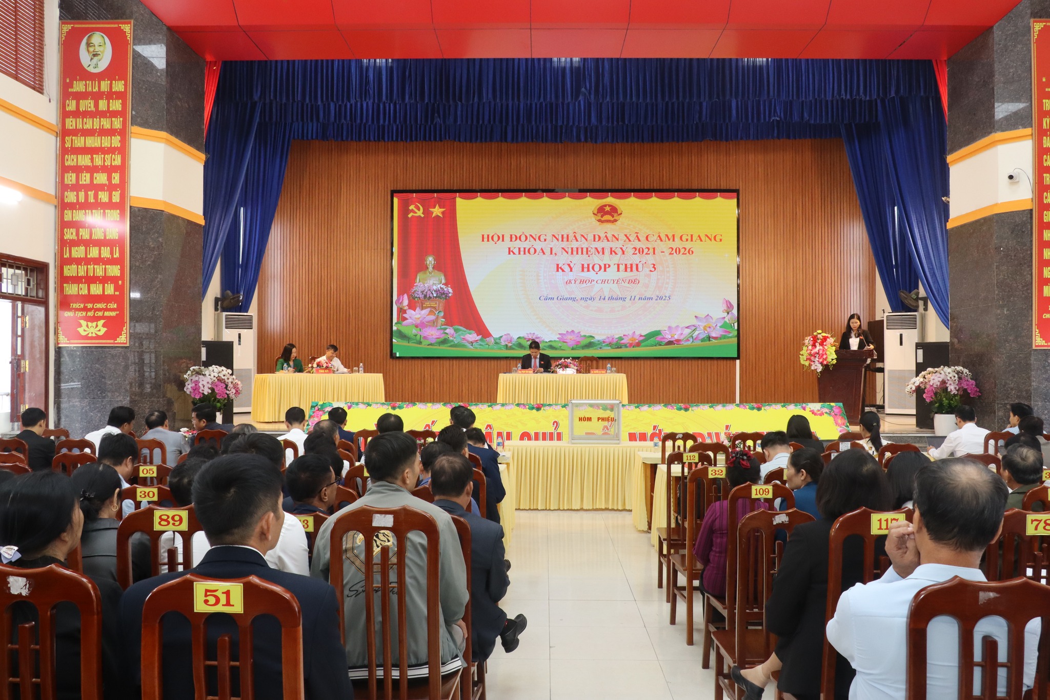Ngày 14/11/2025, tại Hội trường UBND xã Cẩm Giang, Hội đồng nhân dân xã Cẩm Giang khóa I, nhiệm kỳ 2021 – 2026 đã tổ chức Kỳ họp thứ ba (kỳ họp chuyên đề) nhằm xem xét, thảo luận và quyết nghị một số nội dung quan trọng phục vụ nhiệm vụ phát triển kinh tế - xã hội của địa phương.