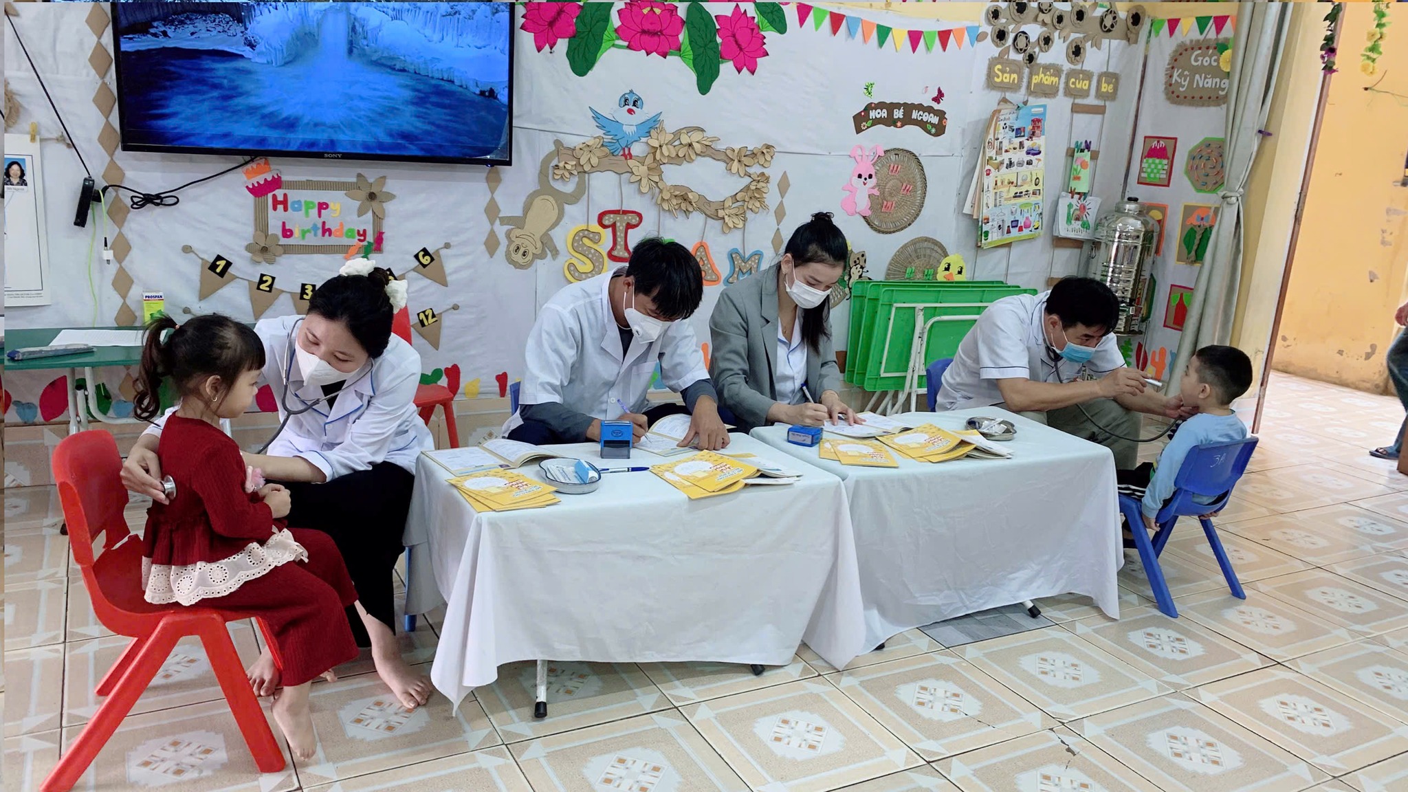 Trường Mầm non Cẩm Giang kết hợp với Trạm Y tế Cẩm Giang số 1 tổ chức khám sức khỏe định kỳ lần 1 cho trẻ năm học 2025-2026