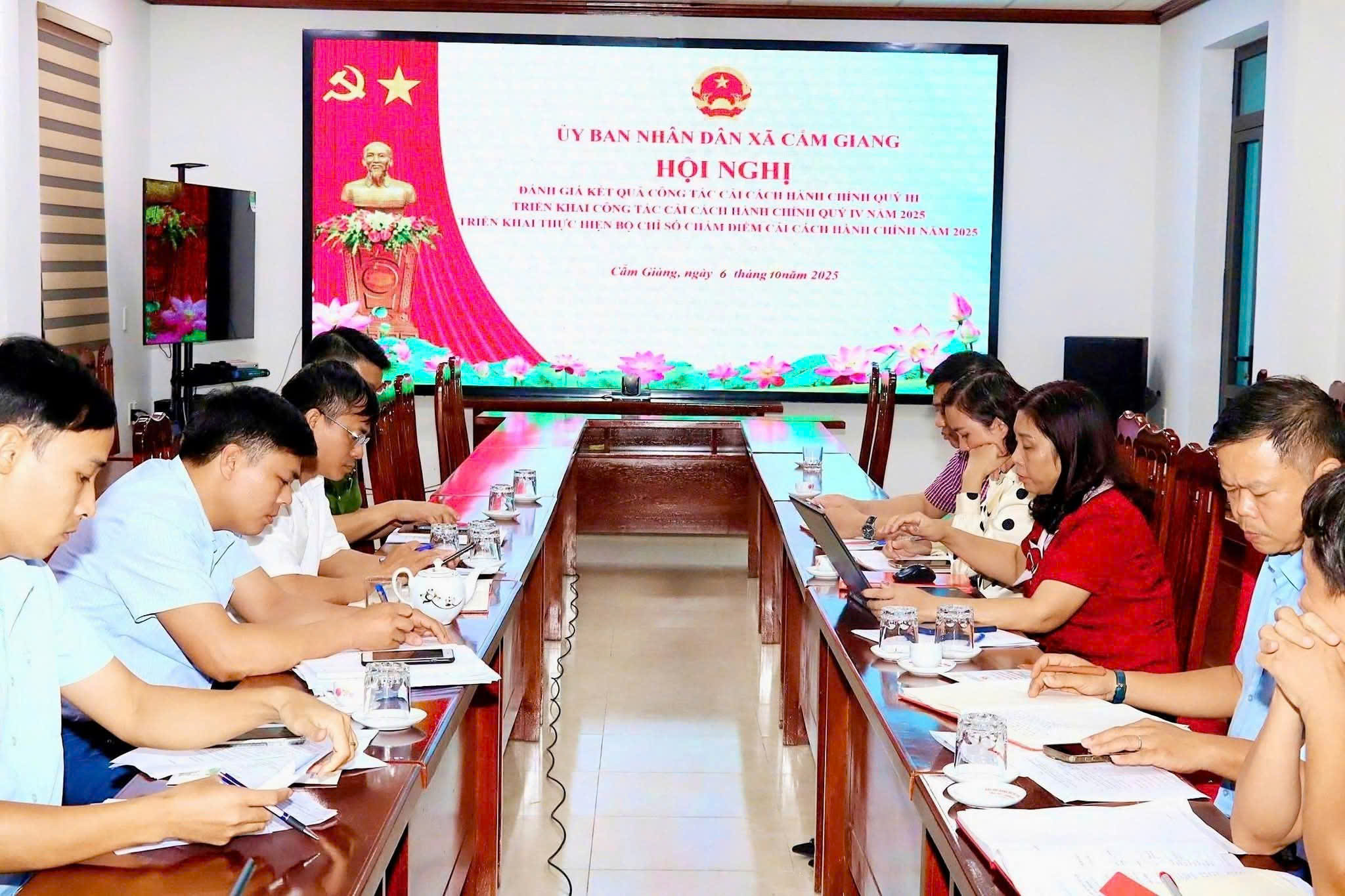 Ngày 06/10/2025, UBND xã Cẩm Giang tổ chức Hội nghị đánh giá kết quả CCHC quý III, triển khai nhiệm vụ CCHC quý IV năm 2025. Tại Hội nghị, UBND xã xác định việc đánh giá kết quả thực hiện các tiêu chí chấm điểm theo Bộ tiêu chí xác định Chỉ số cải cách hành chính đối với cấp xã là một trong các nhiệm vụ quan trọng thực hiện trong quý IV.